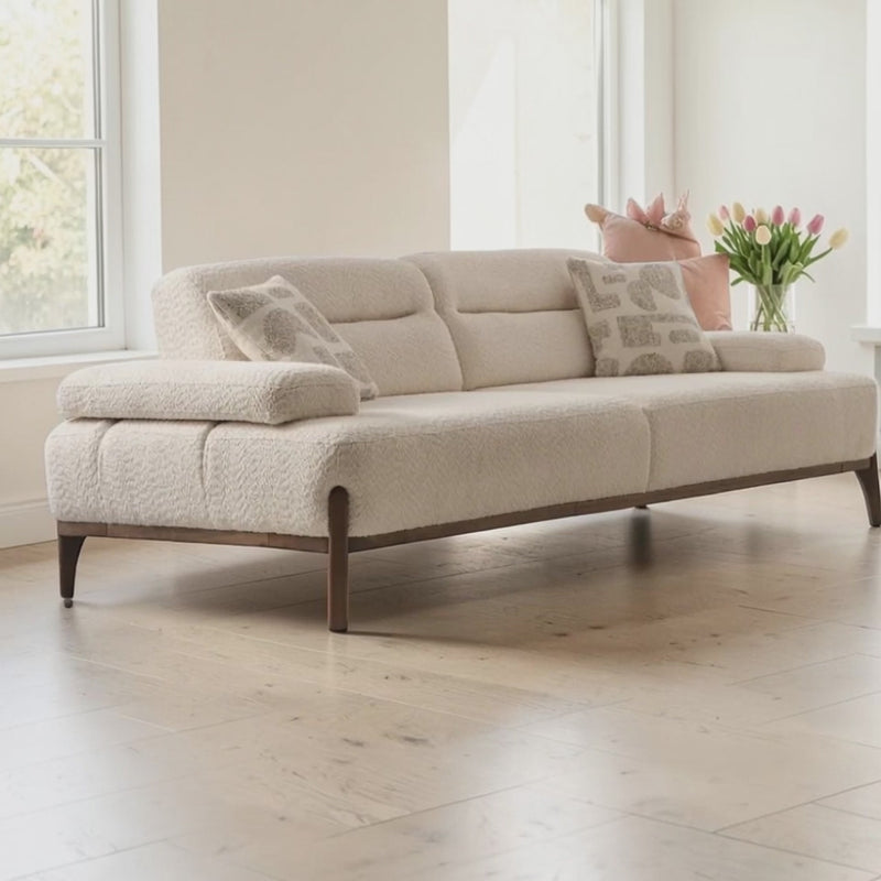 Mocha Sofa er designet med et blødt, skulpturelt formsprog, hvor afrundede linjer, taktil stofstruktur og den varme træbase skaber et roligt, harmonisk udtryk. Sofaens justerbare armlæn og fleksible rygelementer gør den lige så funktionel, som den er æstetisk – perfekt til både afslapning, gæster og hverdagsbrug.