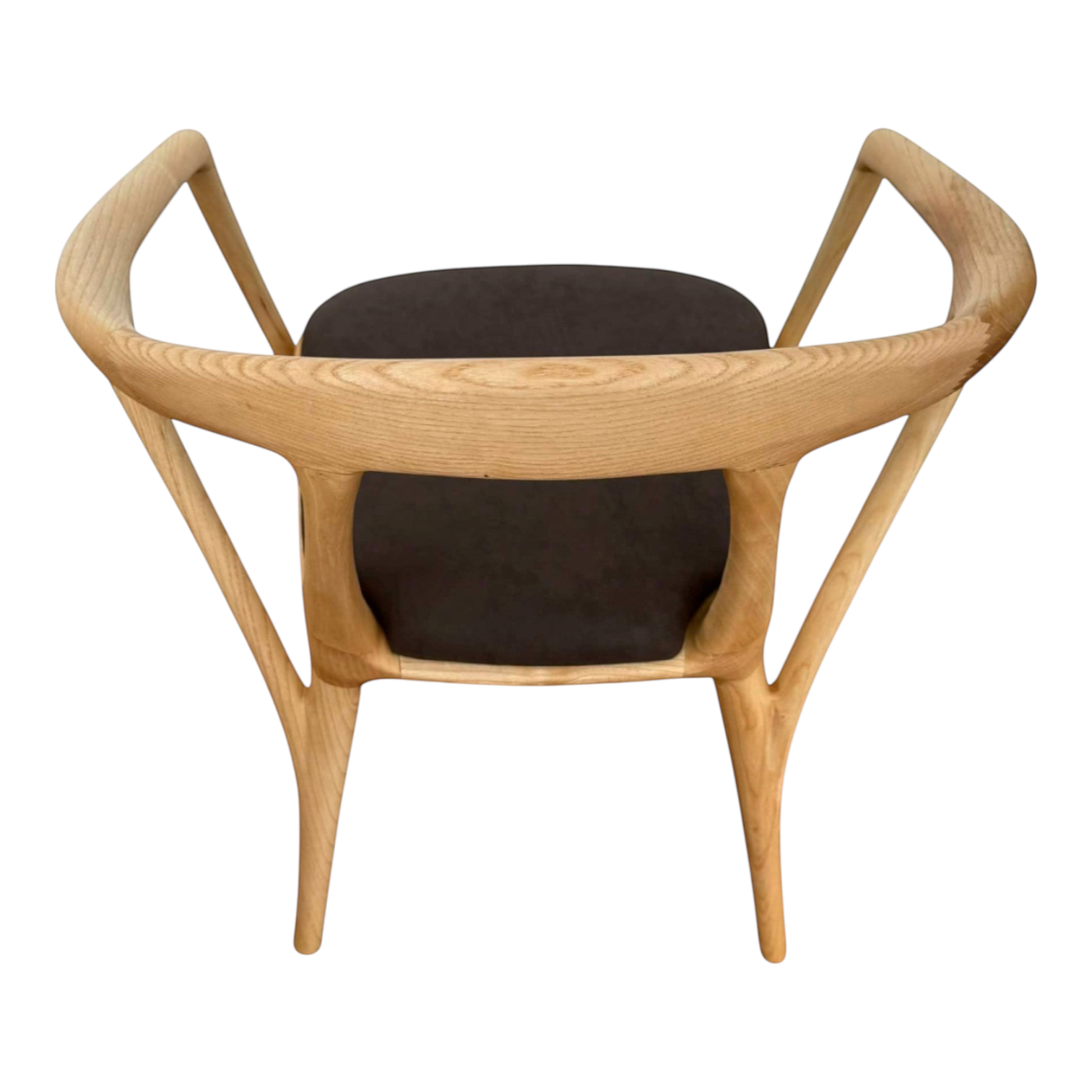 Den let buede ryg og Y-formede rygstøtte giver naturlig ergonomisk støtte. Stolen er designet til lange middage og rolige stunder omkring spisebordet – komfortabel uden at virke tung, robust uden at miste sin lethed.
