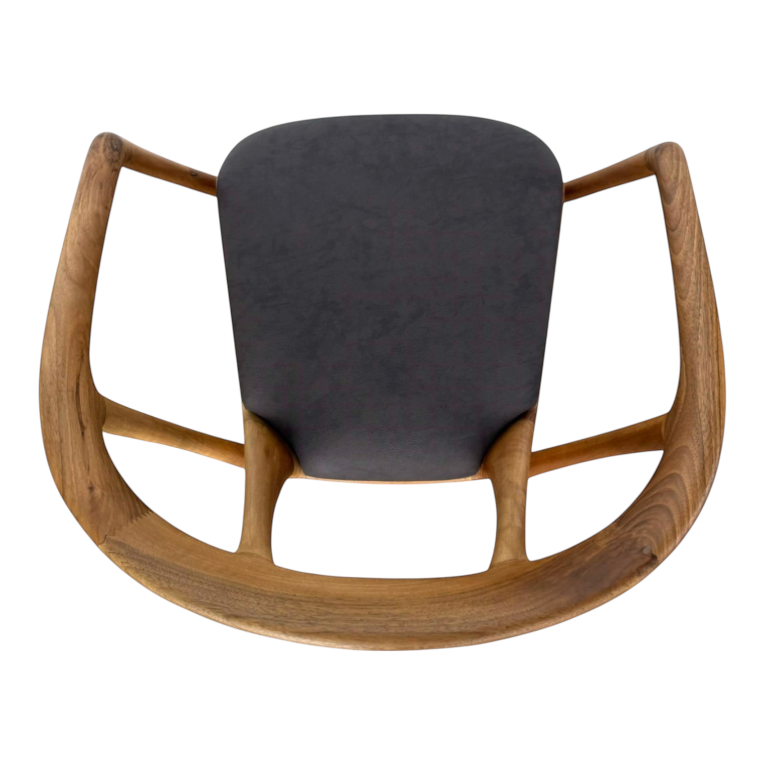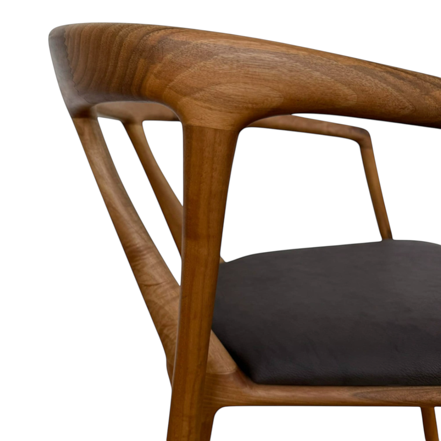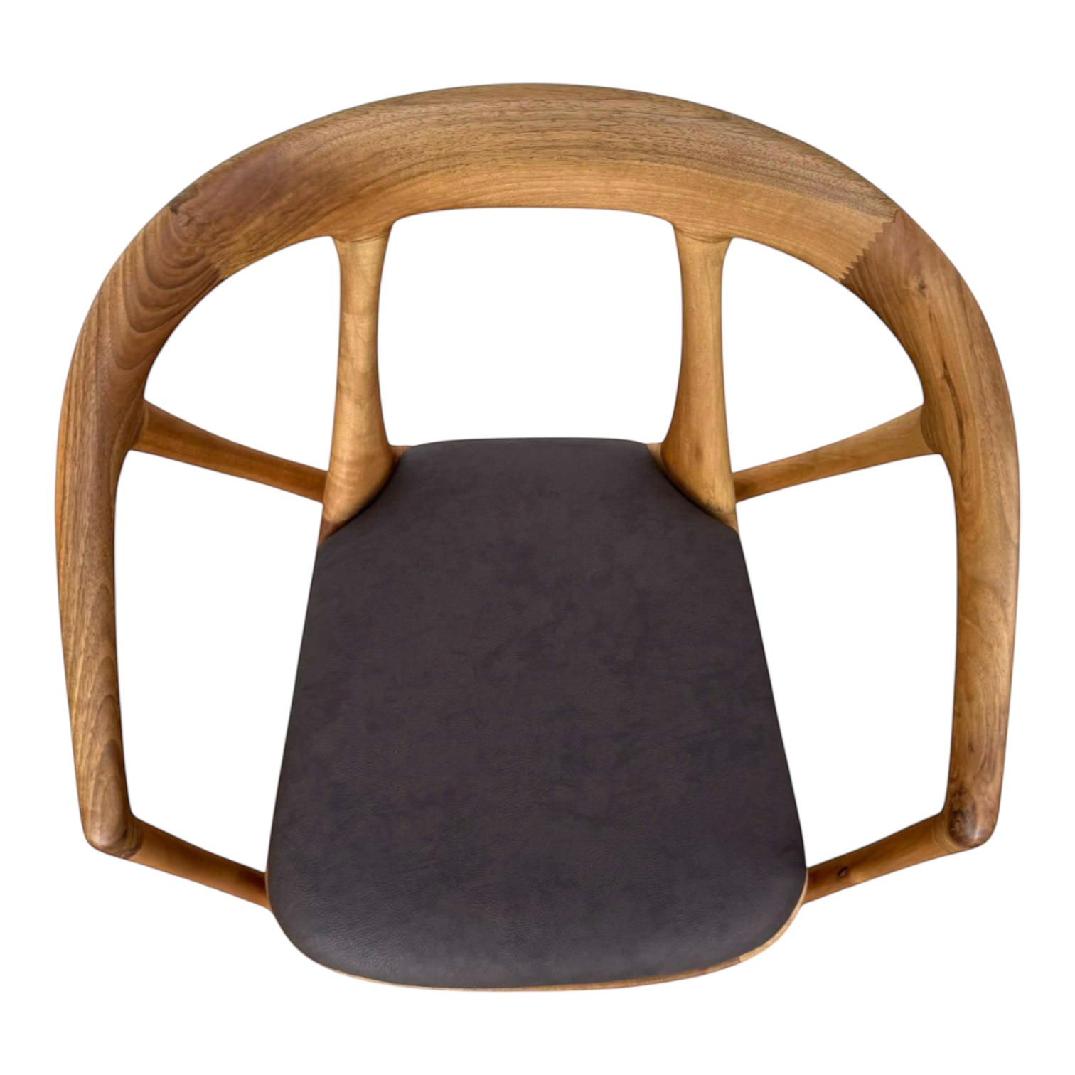 Sædet er betrukket med rigtigt læder, som tilfører stolen komfort og et eksklusivt, taktilt lag. Læderet patinerer smukt over tid og understreger stolens ærlige materialevalg.