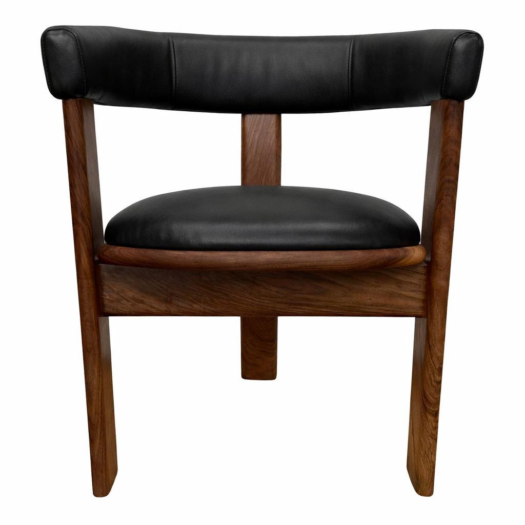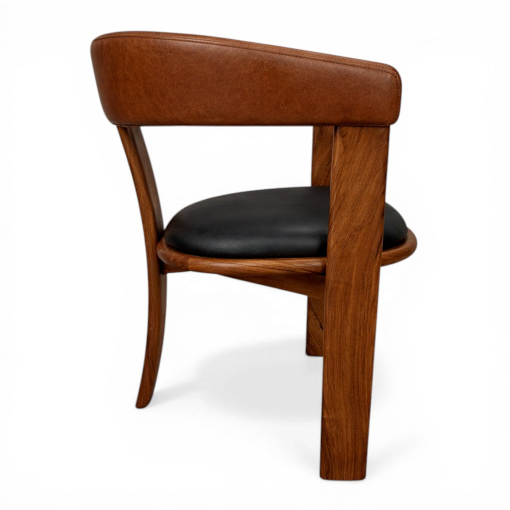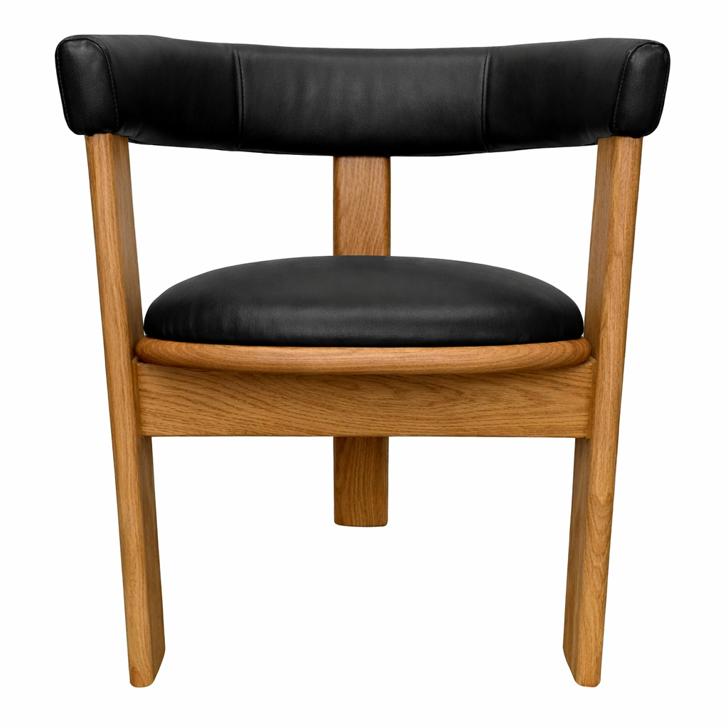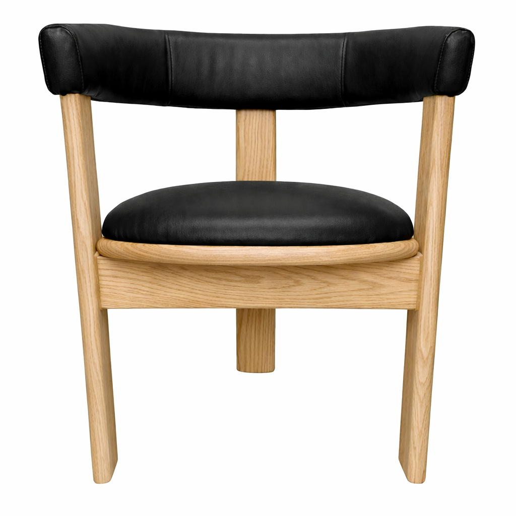 Stolen fås i både læder og stof, så udtrykket kan tilpasses alt fra moderne til klassiske indretninger. Den polstrede siddeflade og afrundede ryg giver en naturlig støtte, som gør stolen behagelig – også når middagen varer lidt længere.