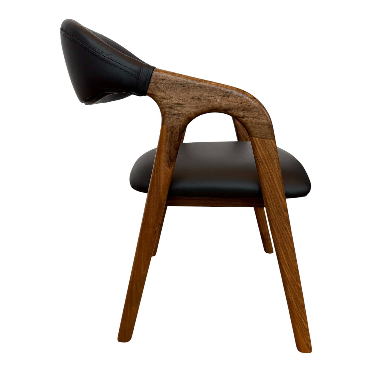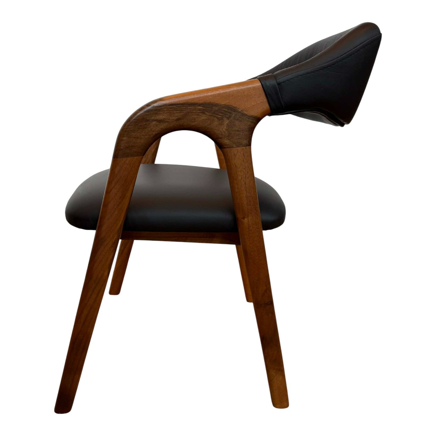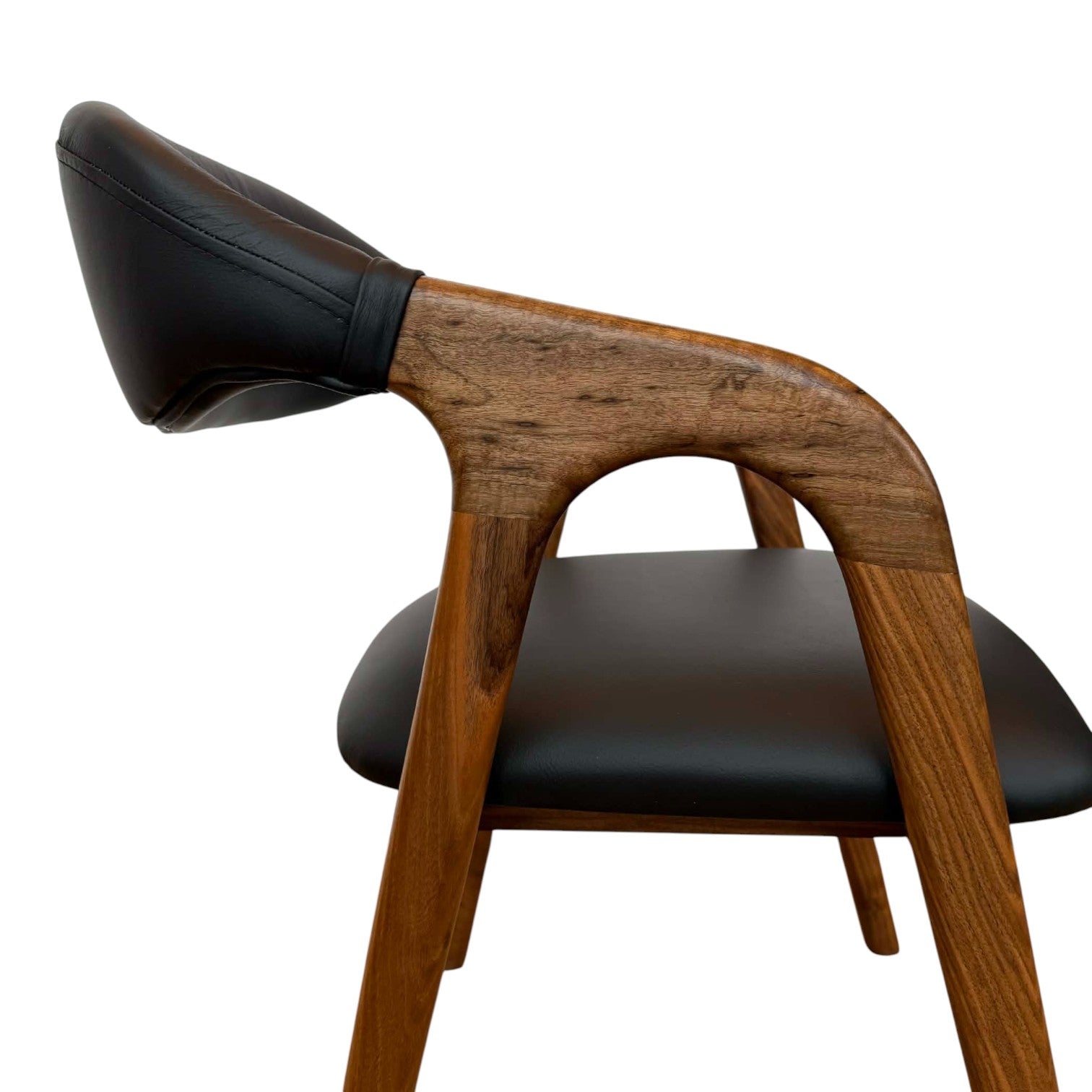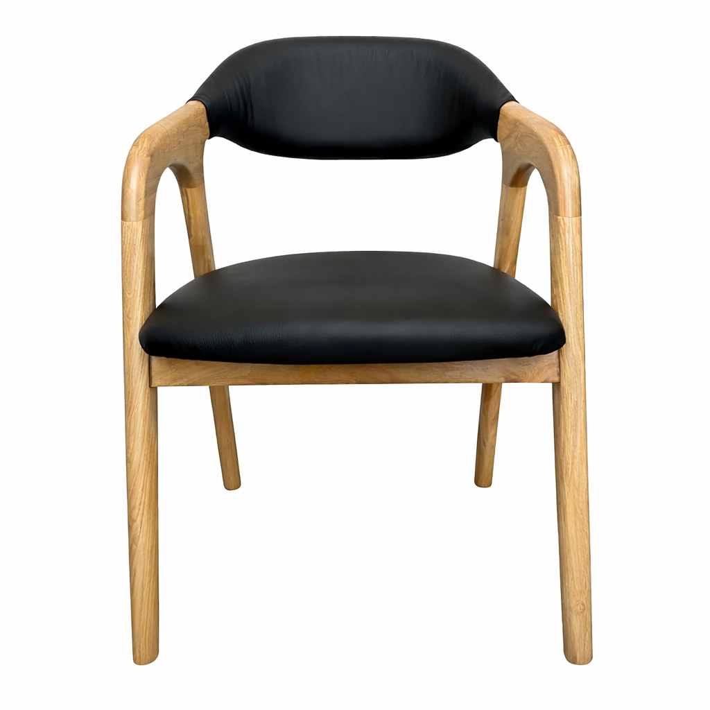 De integrerede armlæn er designet som en del af stolens konstruktion og giver en omsluttende og rolig siddeposition – perfekt til lange middage, samtaler og hverdagsbrug.