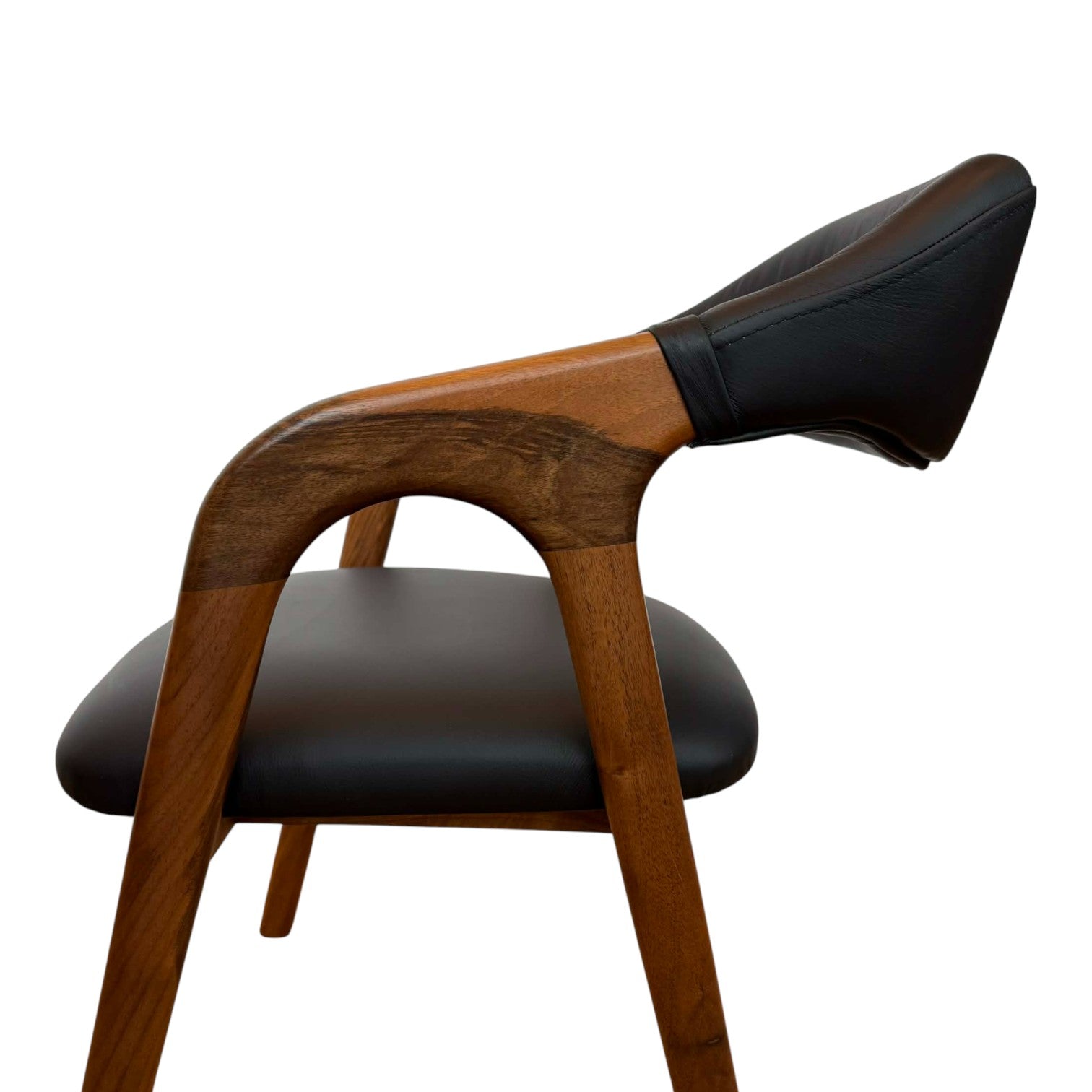 Det afrundede ryglæn og de integrerede armlæn giver stolen en karakteristisk silhuet, som både føles klassisk og moderne. Nordklint Fjord passer perfekt til spiseområder, hvor design skal være roligt, men stadig udstråle kvalitet og styrke.