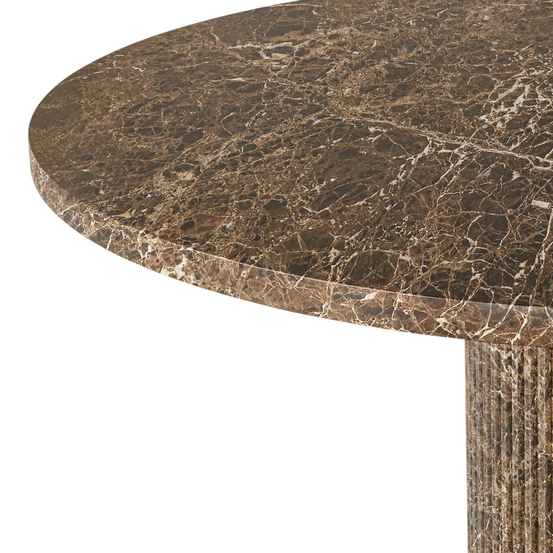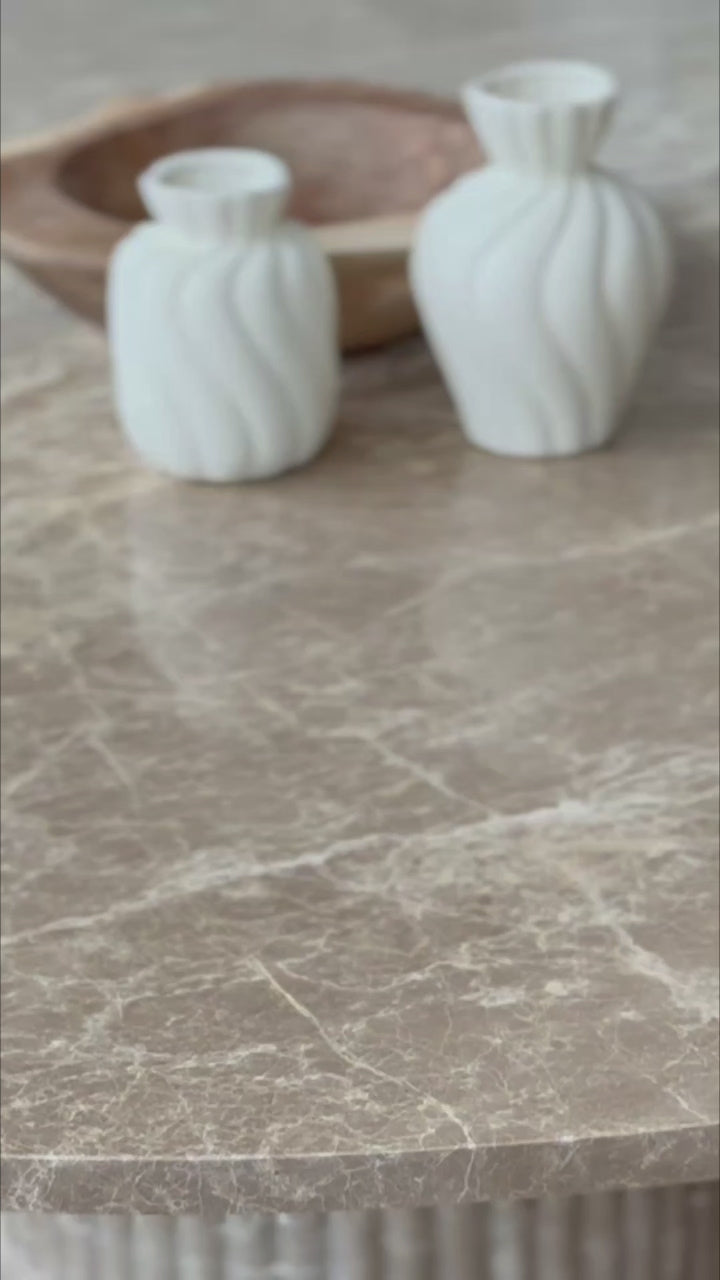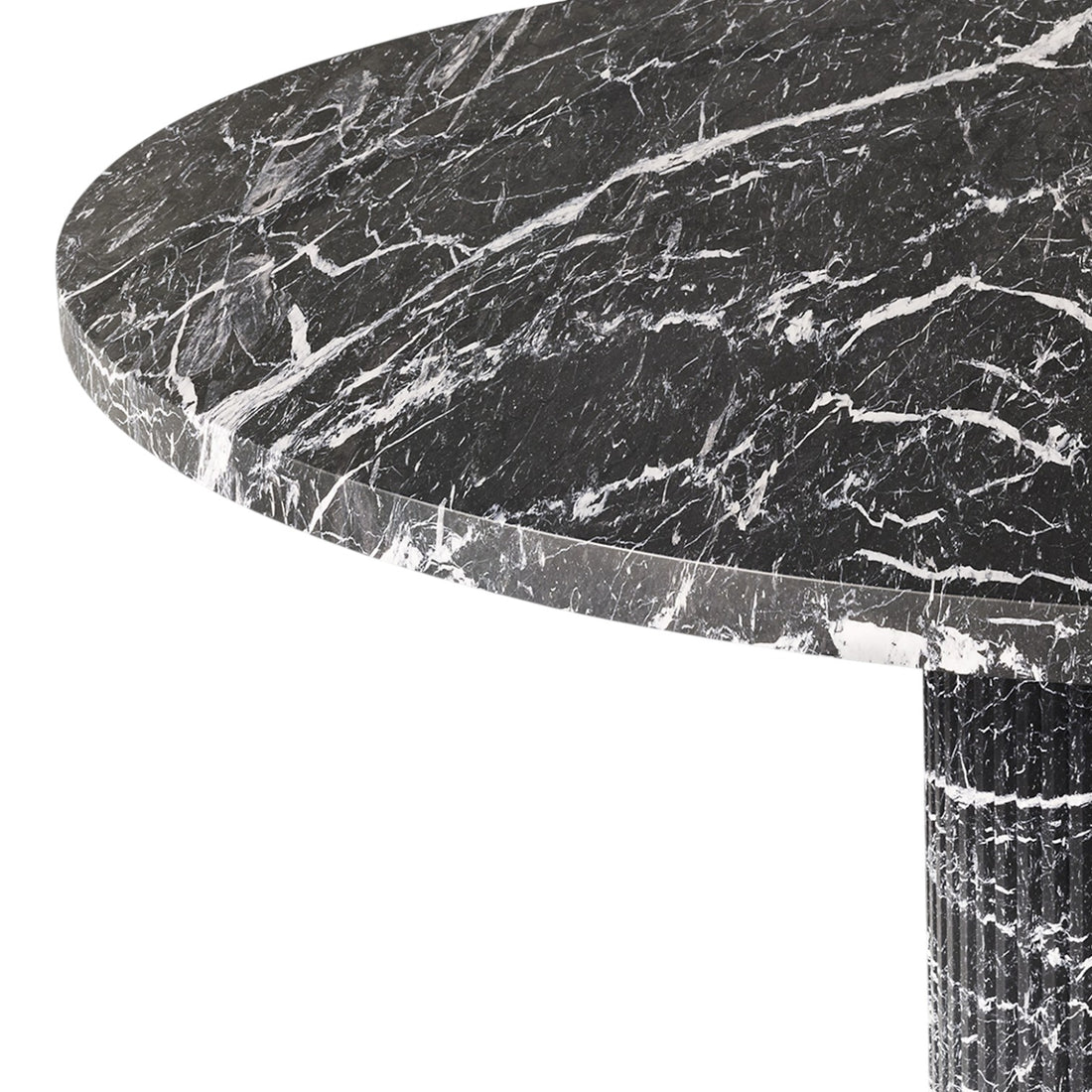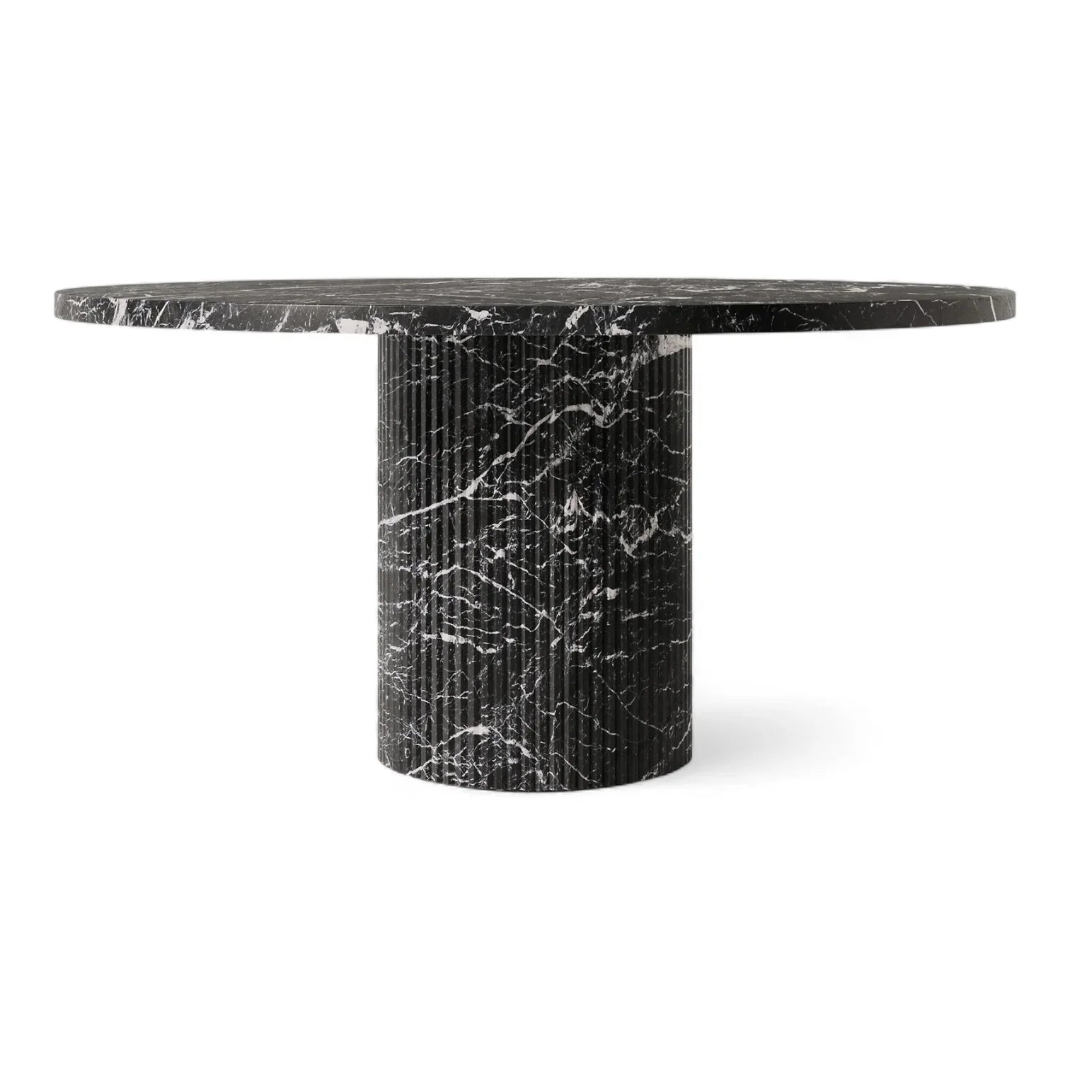 Nova Sten er skabt som et stille udtryk for balance, tekstur og nordisk renhed. Den rillede, cylindriske sokkel giver bordet en tydelig arkitektonisk karakter, mens den massive stenplade hviler ovenpå med en naturlig lethed. Samspillet mellem struktur og glatte flader skaber et raffineret og roligt udtryk, hvor materialets egen skønhed får lov at stå frem.