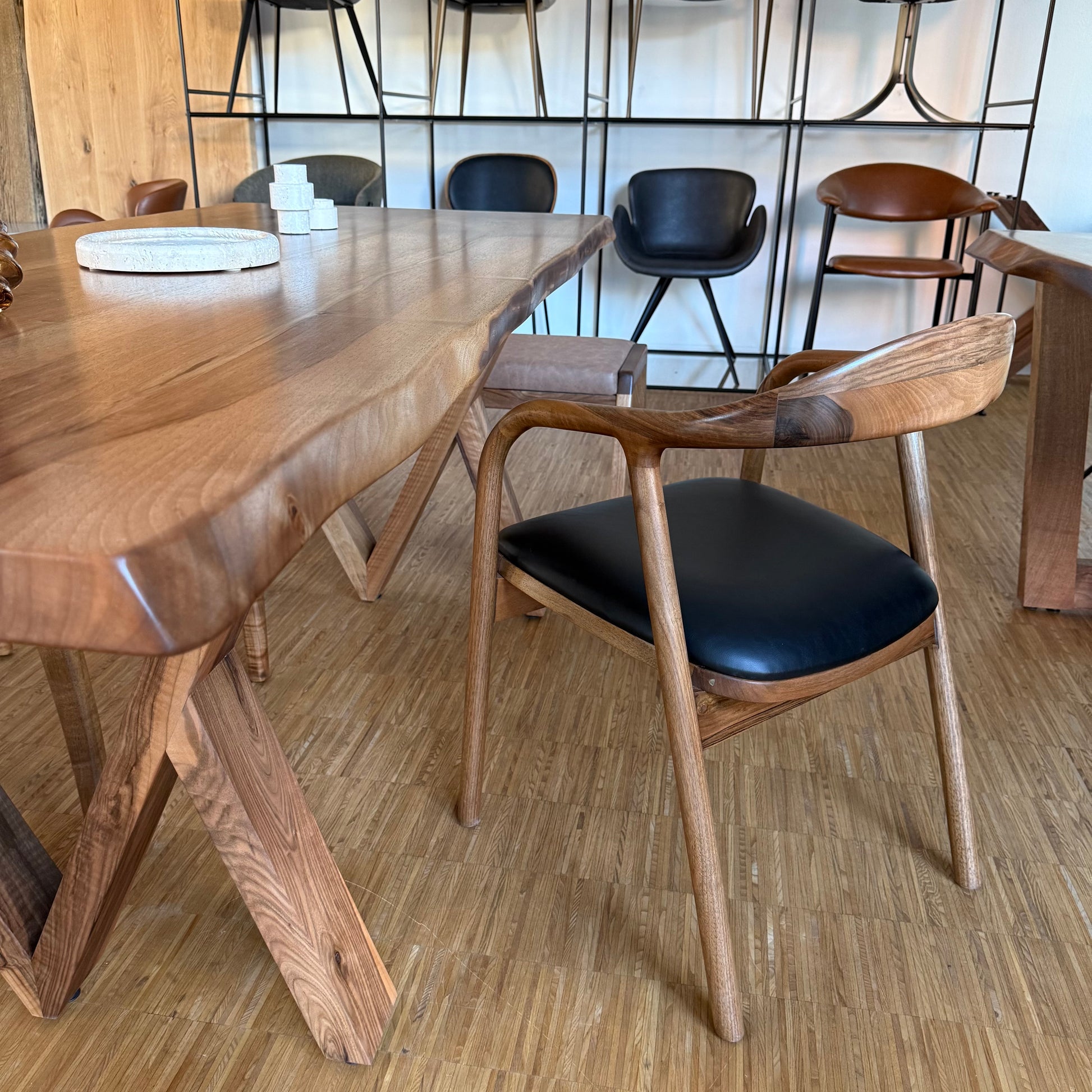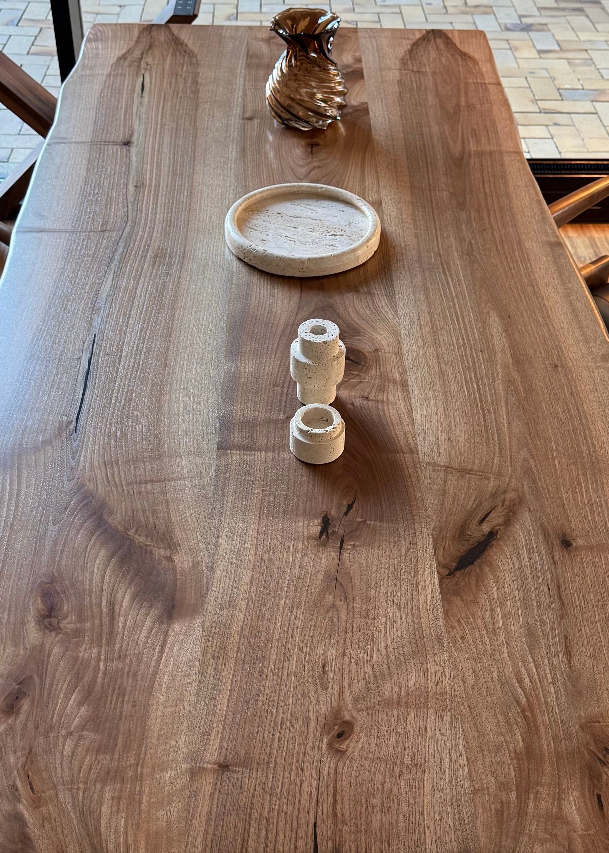 Bordet er behandlet med Rubio Monocoat, som fremhæver valnøddens dybde og varme farvespil. Overfladen fremstår mat, slidstærk og behagelig at røre ved.