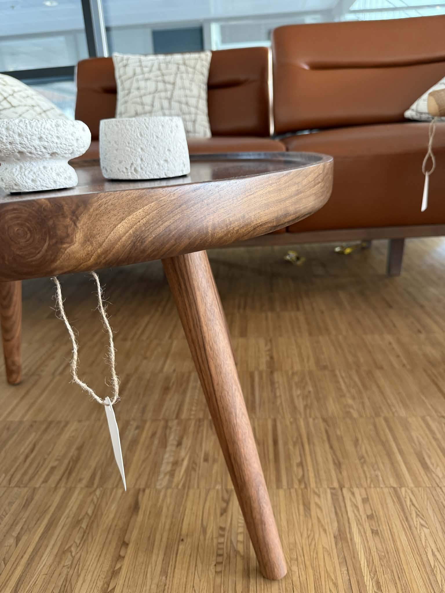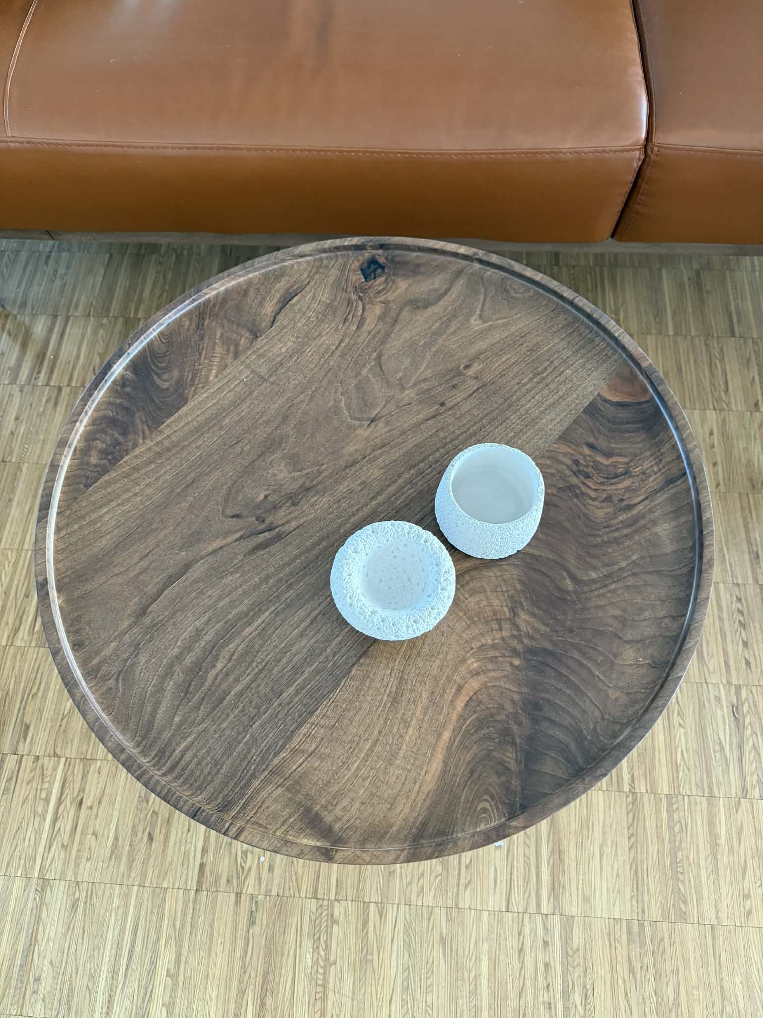 Sofabord 70Ø i massiv valnød med unik kant er skabt til hjem, hvor detaljen betyder noget.